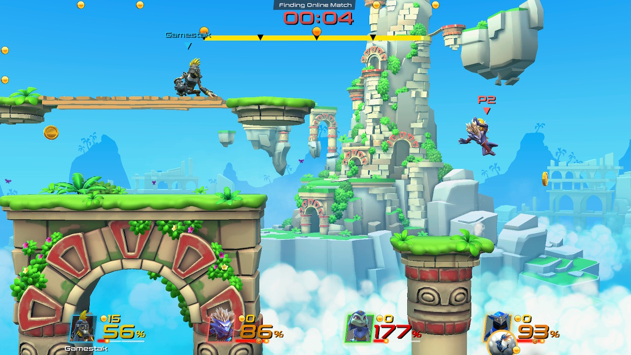 Coins are scattered throughout the stage and it’s your duty to catch as many as you can! Also, don’t be afraid to hit your opponent and steal their coins as well, all it matters is that you reach the end of the match with the most coins!